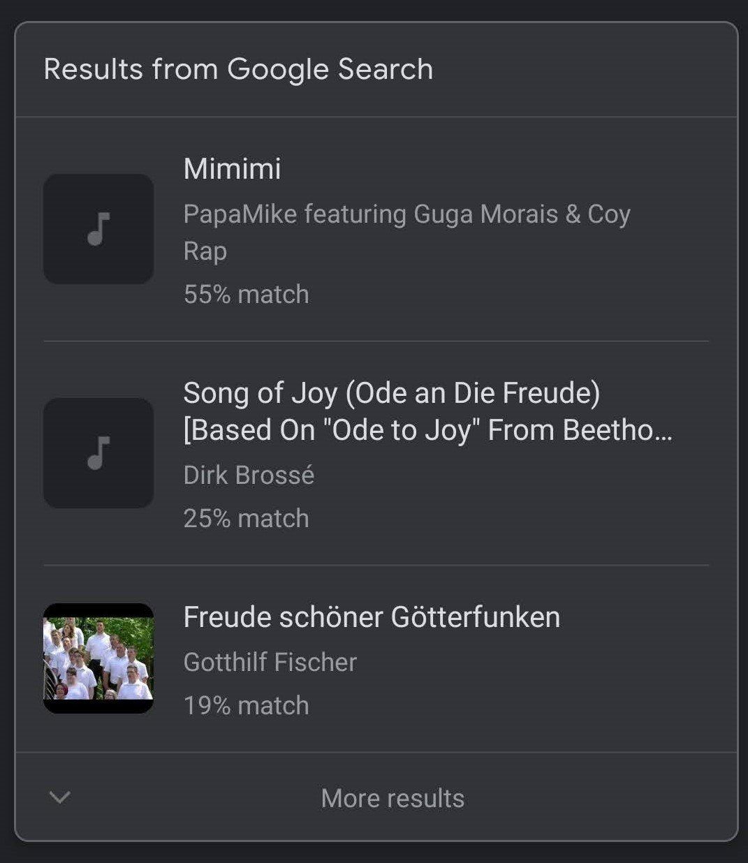 I wearily whistled Ode to Joy into the mic through far-too-dry lips this morning and it came up as the second option, kind of, which really was a pretty good guess all things considered.