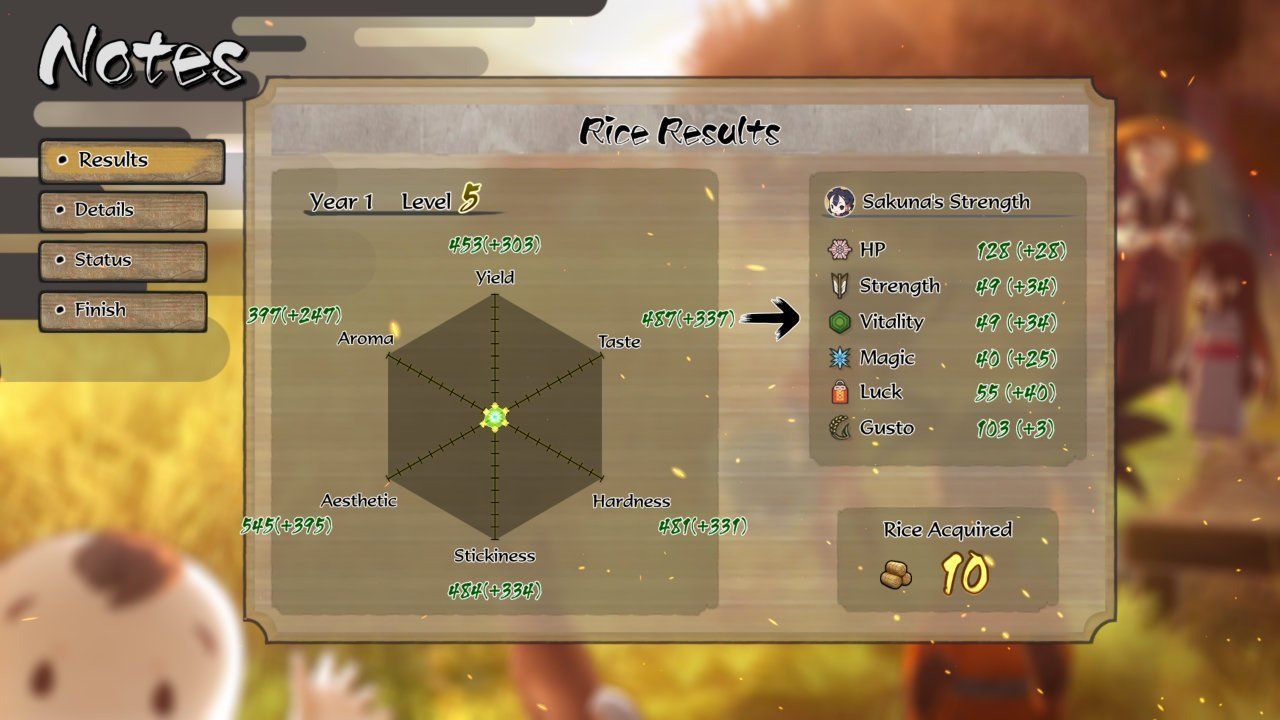 Far from just being an endless cycle of farming and fighting, Sakuna: Of Rice and Ruin's story plays out as you reach major milestones along the way. While the characters are initially grating due to their constant beef with one another, they become warm and amusing people to be around as their relationships deepen.