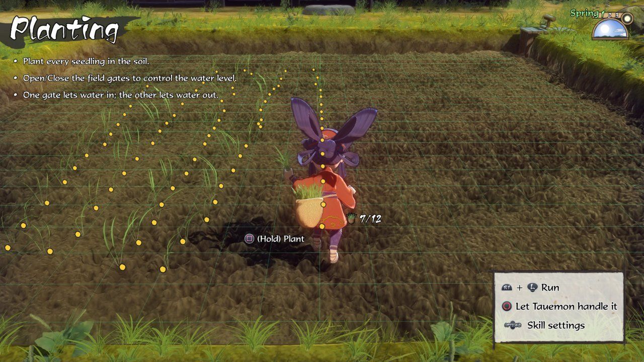 To grow rice, you need to manage all steps from the land tilling, seedling growing, planting, watering, weeding, drying, and husking of the harvested crop — there's a lot to it. Thankfully, Sakuna: Of Rice and Ruin competently eases you into the process with a few things at a time as to not overwhelm.