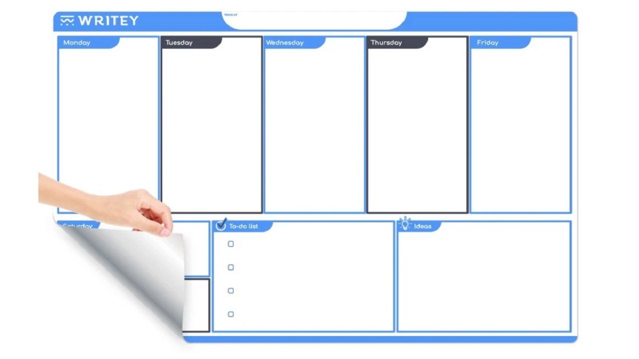 You can stick a couple of cleaning cloths on a velcro 3M strip under the board, and I highly recommend getting your markers from Officeworks or literally anywhere else that isn’t Writey Board.