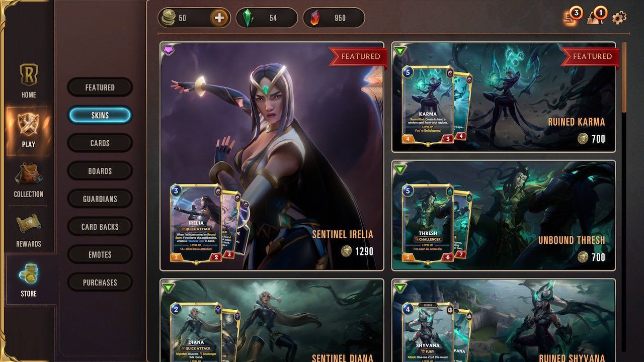 Pricing for Runeterra’s basic skins works out to be 700 coins. The premium skins are pricier at 1290 coins.