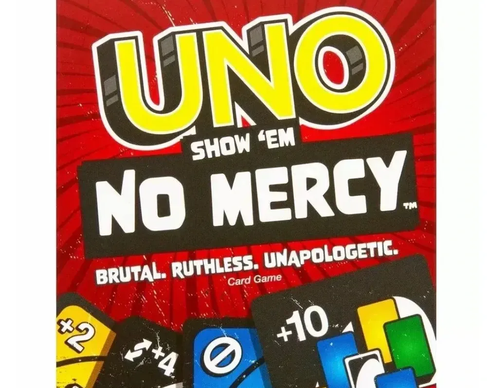 The whole point of UNO is to watch at least one person end up with more cards in hand than they can manage. No Mercy embraces the brutality. Draw 10 anyone? Give in to your dark side and crush your family.